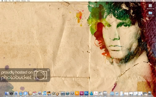 | Let us start off by creating a canvas of 1920X1200 pixels, in RGB mode. I found a picture of Jim Morrison (you can obviously use any of your favourite characters, or your own picture for that matter). I found the picture here. Copy and paste the image into our canvas. Use transform and scale it to fit our canvas by holding down the Shift-Key. This keeps the original aspect ratio of the image and it does not look stretched. |