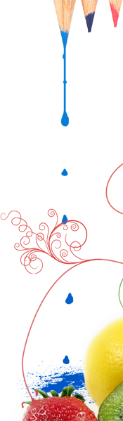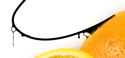 | For the blue pencil, I used a line coming from the tip with a few drops on it and a splash at hte bottom created using a splatter brush. Do the same with the gradient overlay but choose a shade of blue as we are not trying to blend it to a fruit here. |