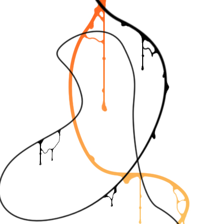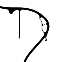 | Now we are going to add some detail to it and make it look like goo, below I’ve shown four examples of what it should look like. In each of these I first used the line tool (set at fill pixels in the main toolbar) at about 2-3px and drew a line coming from the curve. I then used a 2-3px round brush and when zoomed in I added some more detils freehand by just brushing slowly, I added drops at the bottom of each line and some beads of liquid as well. This takes time to do but looks great, the same techniques are explained in another tutorial I wrote which you can read here. |