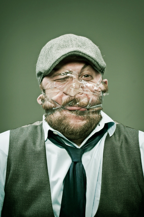 Photographer Wes Naman had a similar stroke of genius in the middle of a gift-wrapping session with his assistant Joy Godfrey, when the lady accidently put a piece of scotch tape on her nose and ended up with an awkward expression. Naman did the same to his lips trying to be hilarious. |